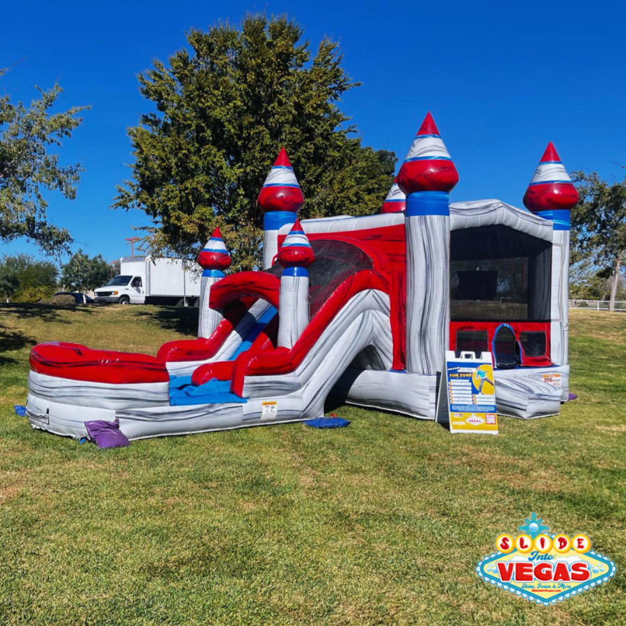Want to take your event to the next level? Ask us about bundling our matching Master Blaster giant slide or pair the Titan Dual Castle 4N1 with it's twin, our Cotton Candy Castle 4N1 for larger events. With its vibrant colors and spacious design, this jumper 4N1 rental is sure to impress your guests and create unforgettable memories.